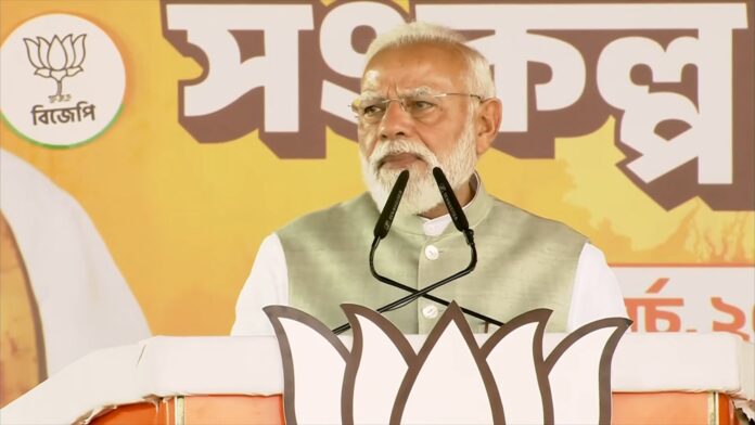 पीएम मोदी ने कहा, “बंगाल में बदलाव अब दीवारों पर भी लिखा जा चुका है और बंगाल के लोगों के दिलों में भी छप चुका है। अब बंगाल से निर्मम सरकार का अंत होकर रहेगा, अब बंगाल से महाजंगलराज का खात्मा होगा। इसलिए बंगाल के हर कोने से आवाज उठ रही है – चाई बीजेपी सरकार, अबकी बार! कल टीएमसी ने इस रैली में आने वाले आप सभी लोगों को चोर कहकर गाली दी है। असली चोर कौन है, ये बंगाल की प्रबुद्ध जनता जानती है। अपनी कुर्सी जाते हुए देखकर यहां की निर्मम सरकार बौखला गई है। आज भी इस सभा को रोकने के लिए निर्मम सरकार ने सारे हथियार निकाल लिए। आप लोगों को आने से रोकने के लिए ब्रिज बंद करवा दिए, गाड़ियां रुकवा दी, ट्रैफिक जाम करवाया, भाजपा के झंडे उखड़वा दिए, पोस्टर फड़वा दिए। लेकिन निर्मम सरकार साफ-साफ देख लो, आज के जनसैलाब को रोक नहीं पाई हो।”
